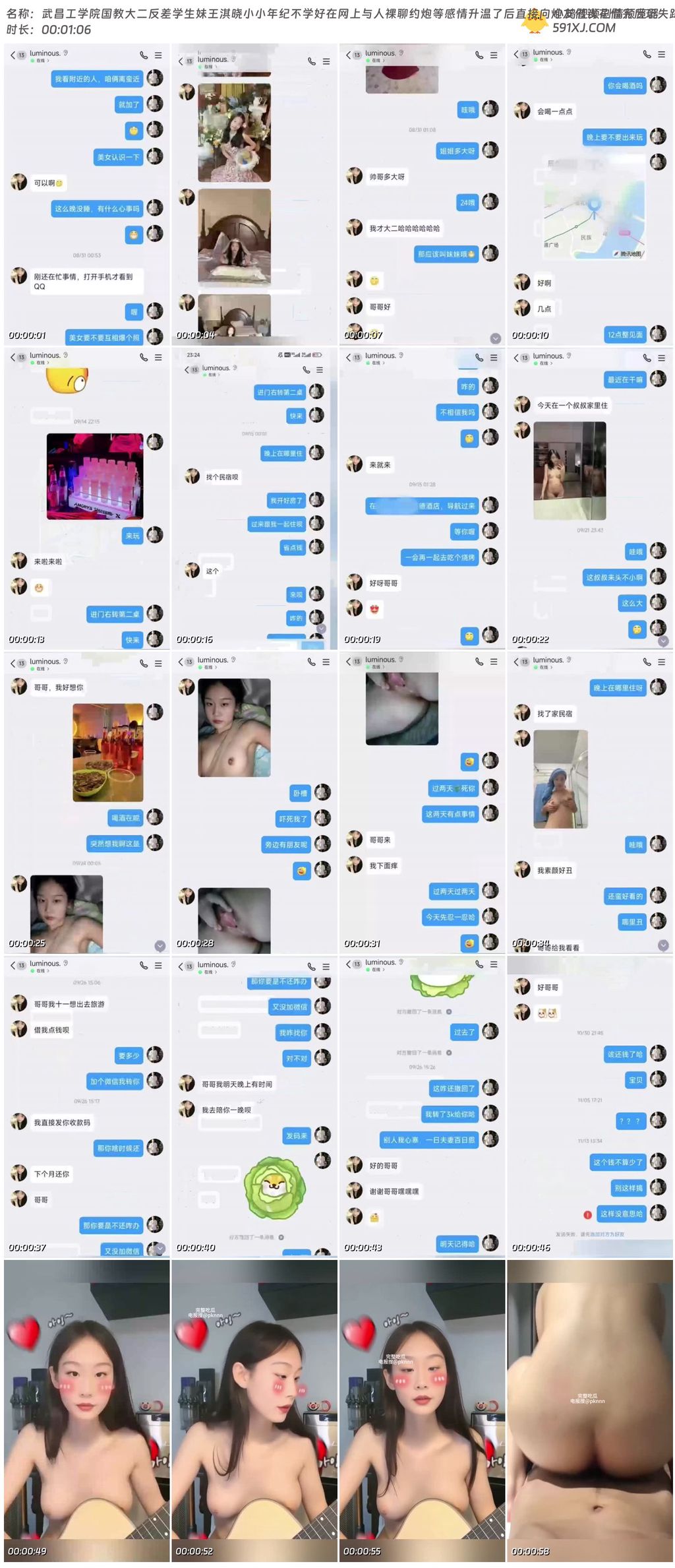 武昌工学院国教大二反差学生妹王淇晓小小年纪不学好在网上与人裸聊约炮等感情升温了后直接向炮友借钱花借完后玩失踪不还遭到曝光