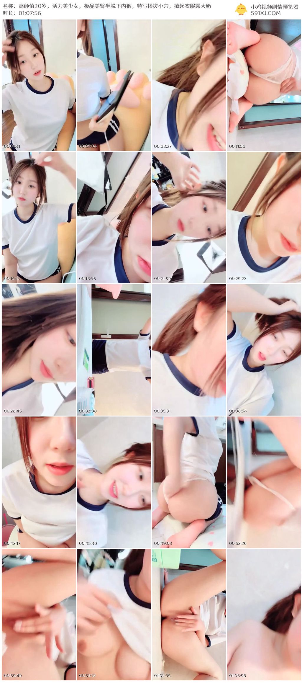 高颜值20岁,活力美少女,极品美臀半脱下内裤,特写揉搓小穴,撩起衣服露大奶