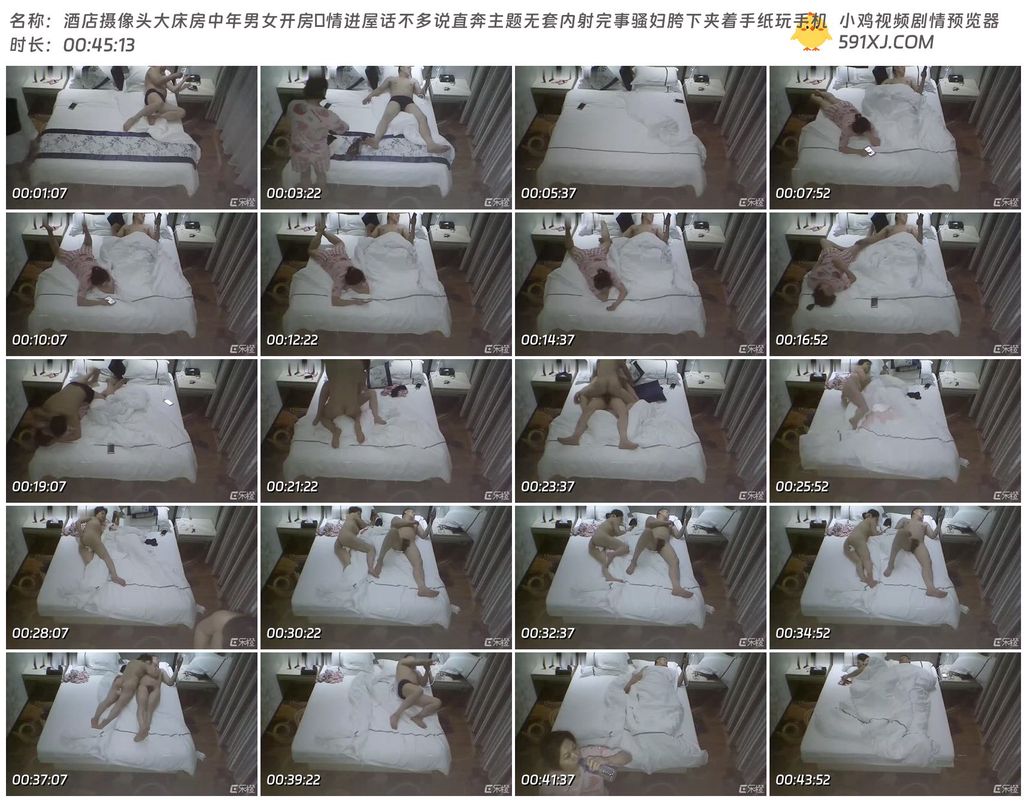 酒店摄像头大床房中年男女开房偸情进屋话不多说直奔主题无套内射完事骚妇胯下夹着手纸玩手机