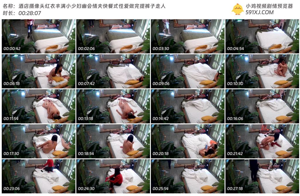 酒店摄像头红衣丰满小少妇幽会情夫快餐式性爱做完提裤子走人