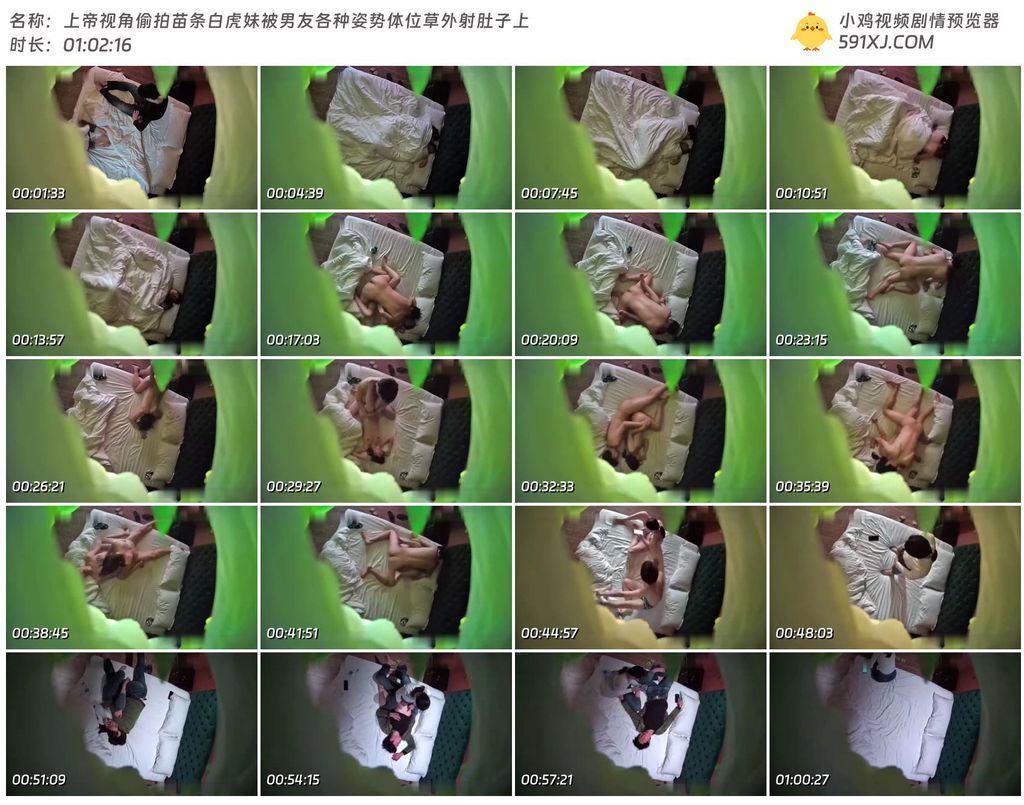 上帝视角偷拍苗条白虎妹被男友各种姿势体位草外射肚子上