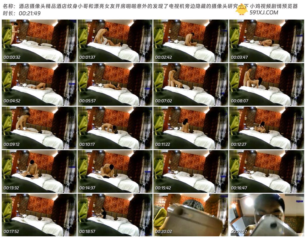酒店摄像头精品酒店纹身小哥和漂亮女友开房啪啪意外的发现了电视机旁边隐藏的摄像头研究一下