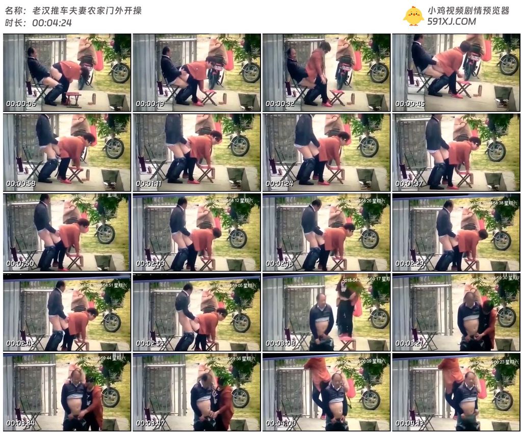 老汉推车夫妻农家门外开操